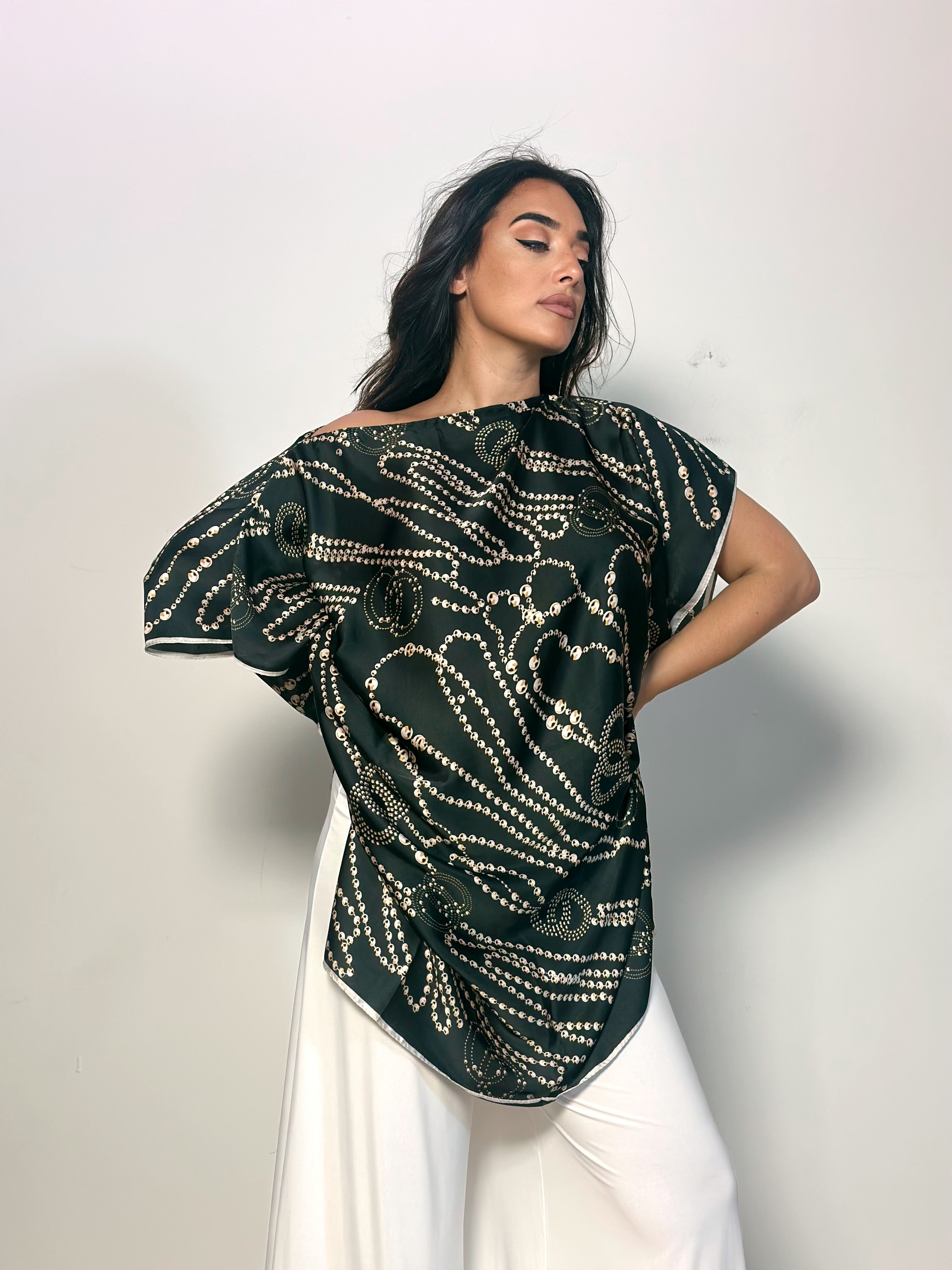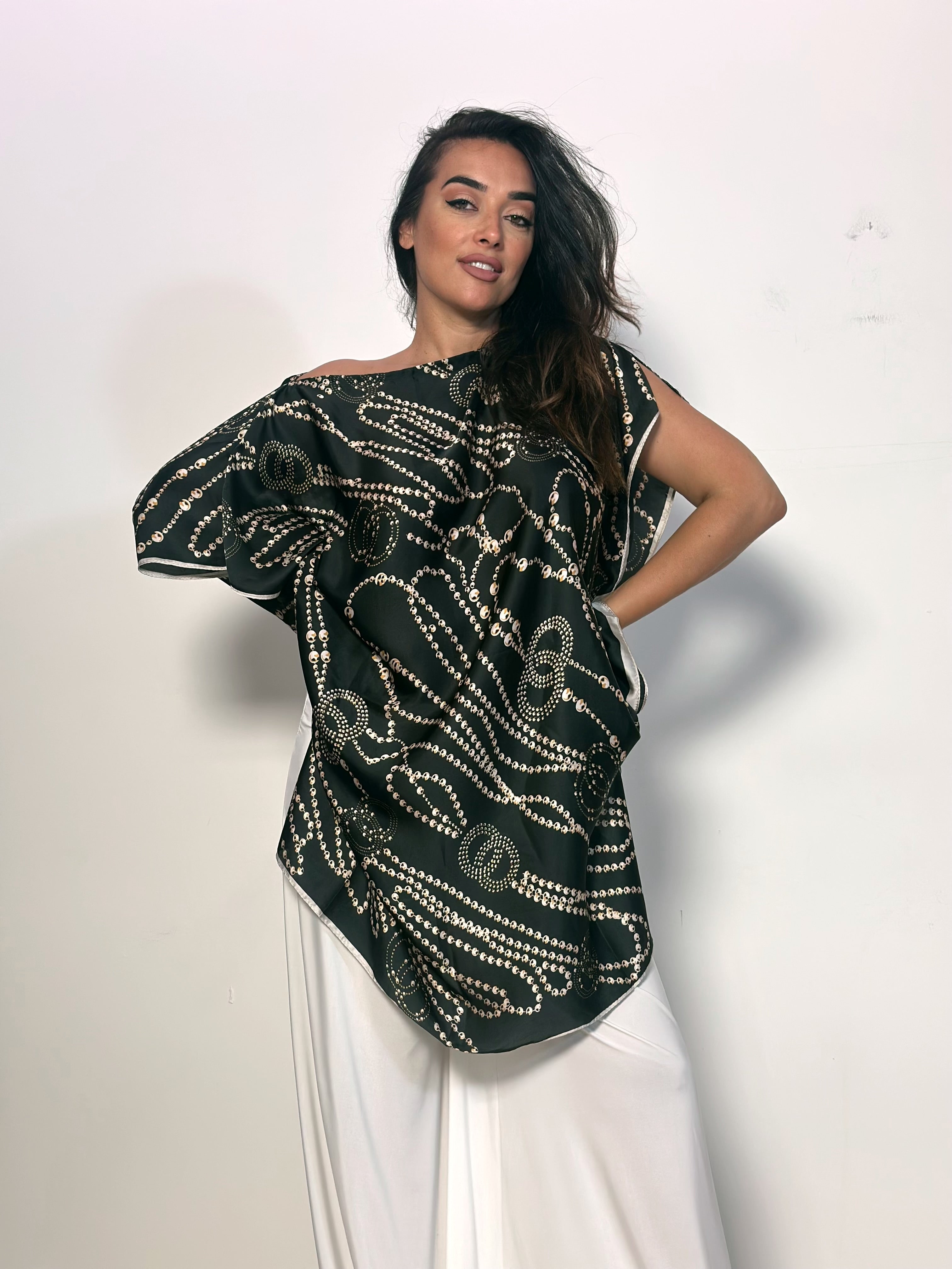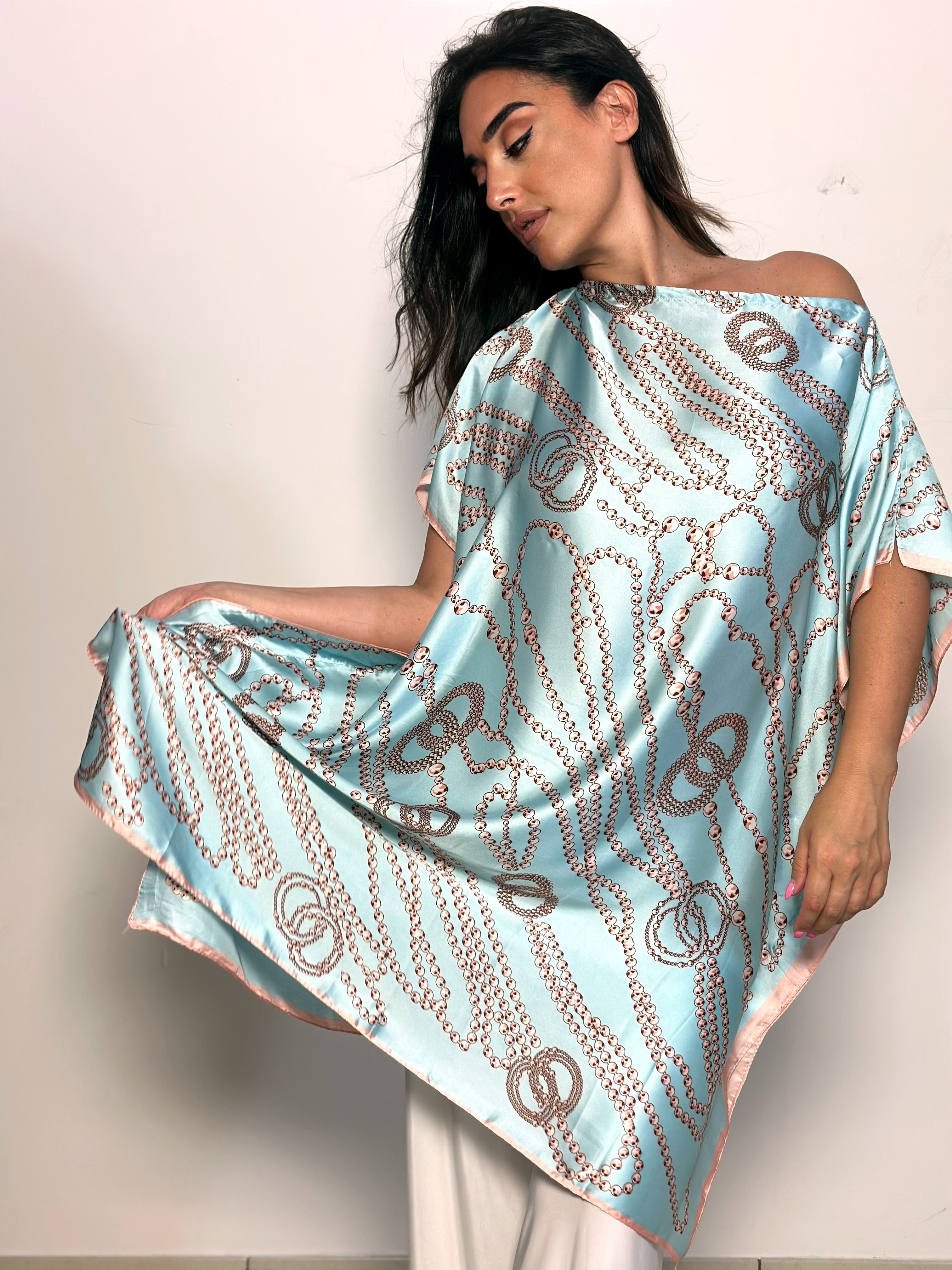 Questo abito è un capolavoro di stile. Realizzato con un mix di materiali di pregio: 70% viscosa e 30% seta. La combinazione di questi due materiali conferisce al tessuto una morbidezza unica e un aspetto lussuoso. Perfetto per occasioni speciali, questo caftano si distingue per la sua eleganza e raffinatezza.