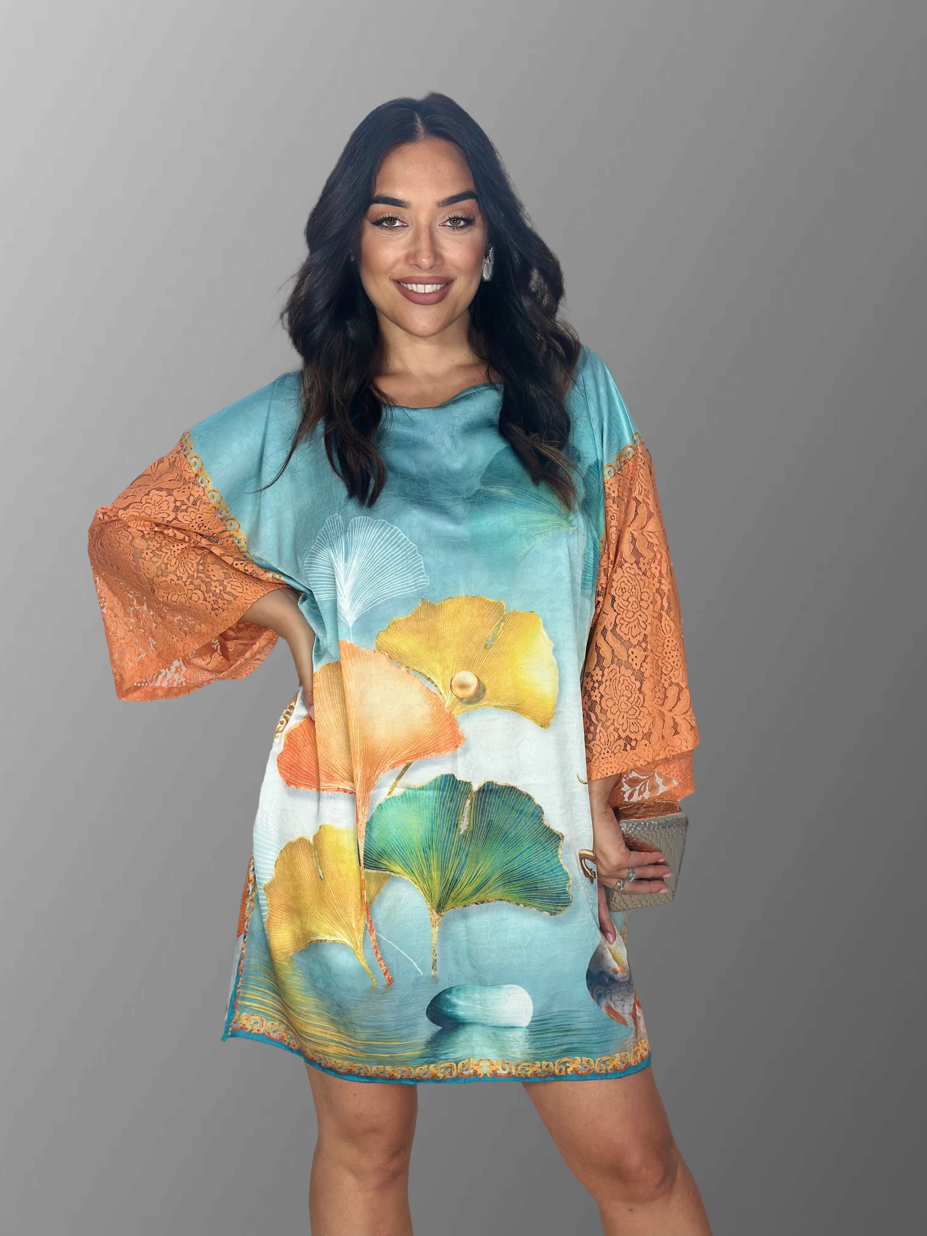 Il materiale misto seta garantisce una sensazione di morbidezza e lusso. Le maniche in pizzo conferiscono un'essenza delicata e femminile. Ideale per chi ama abbinare eleganza e comodità in un unico capo. Il Caftano Turchese è un must-have per ogni guardaroba femminile.