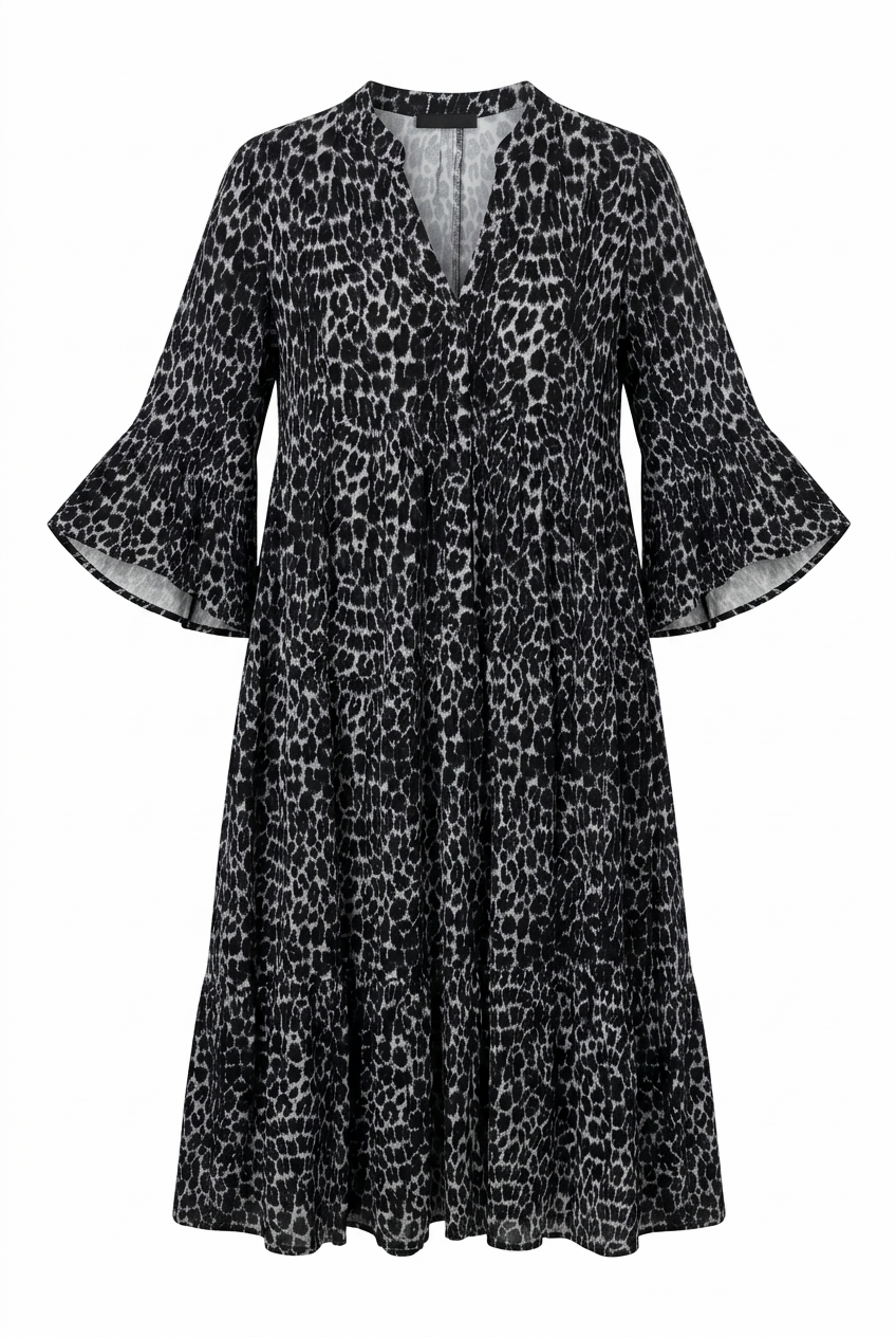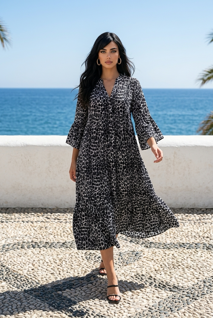 Indossalo per una serata fuori, un evento speciale o semplicemente per sentirti potente ogni giorno: l'Abito Maculato si adatta al tuo ritmo, valorizzando ogni movimento con la sua stampa dinamica e affascinante.
