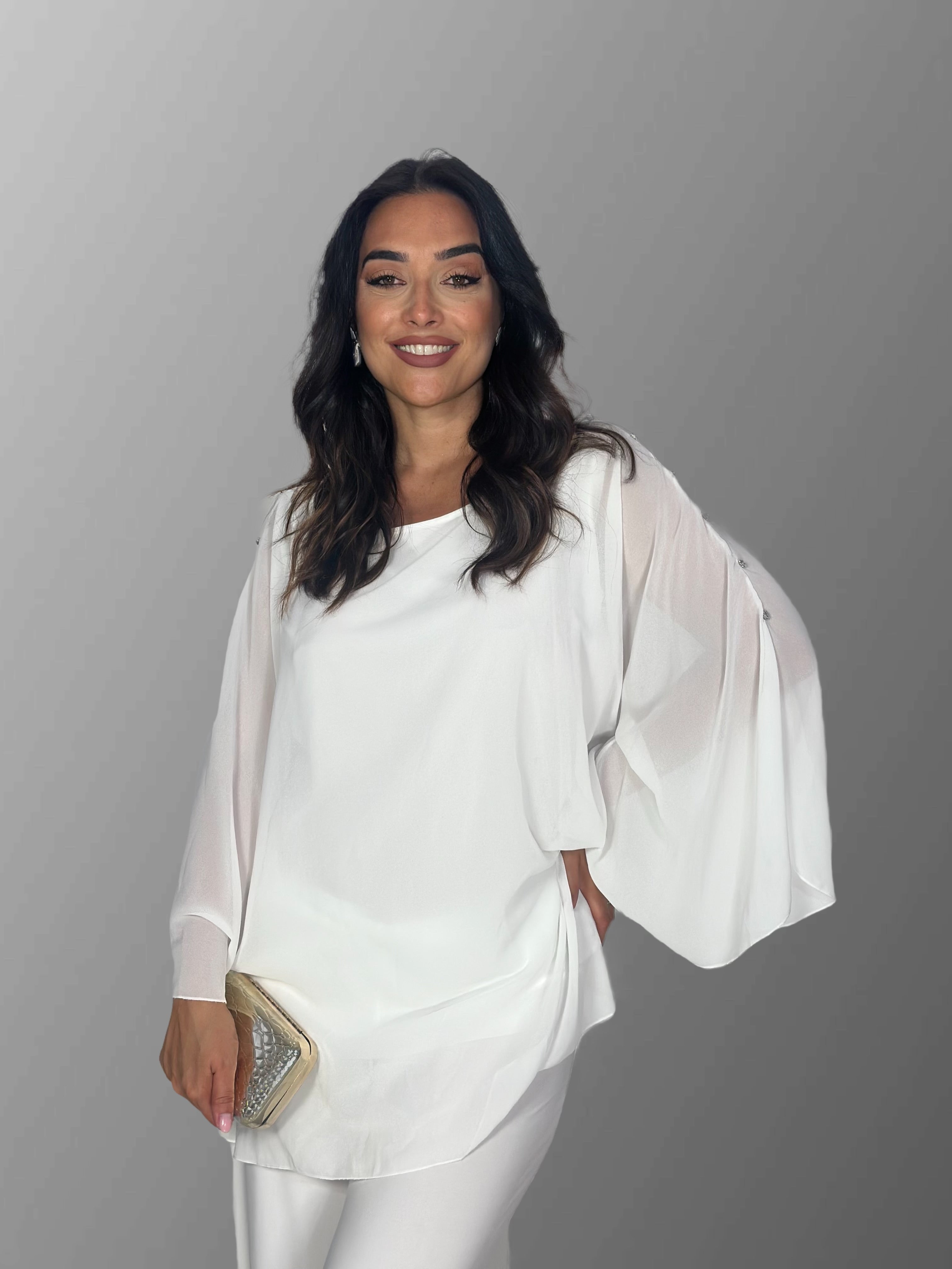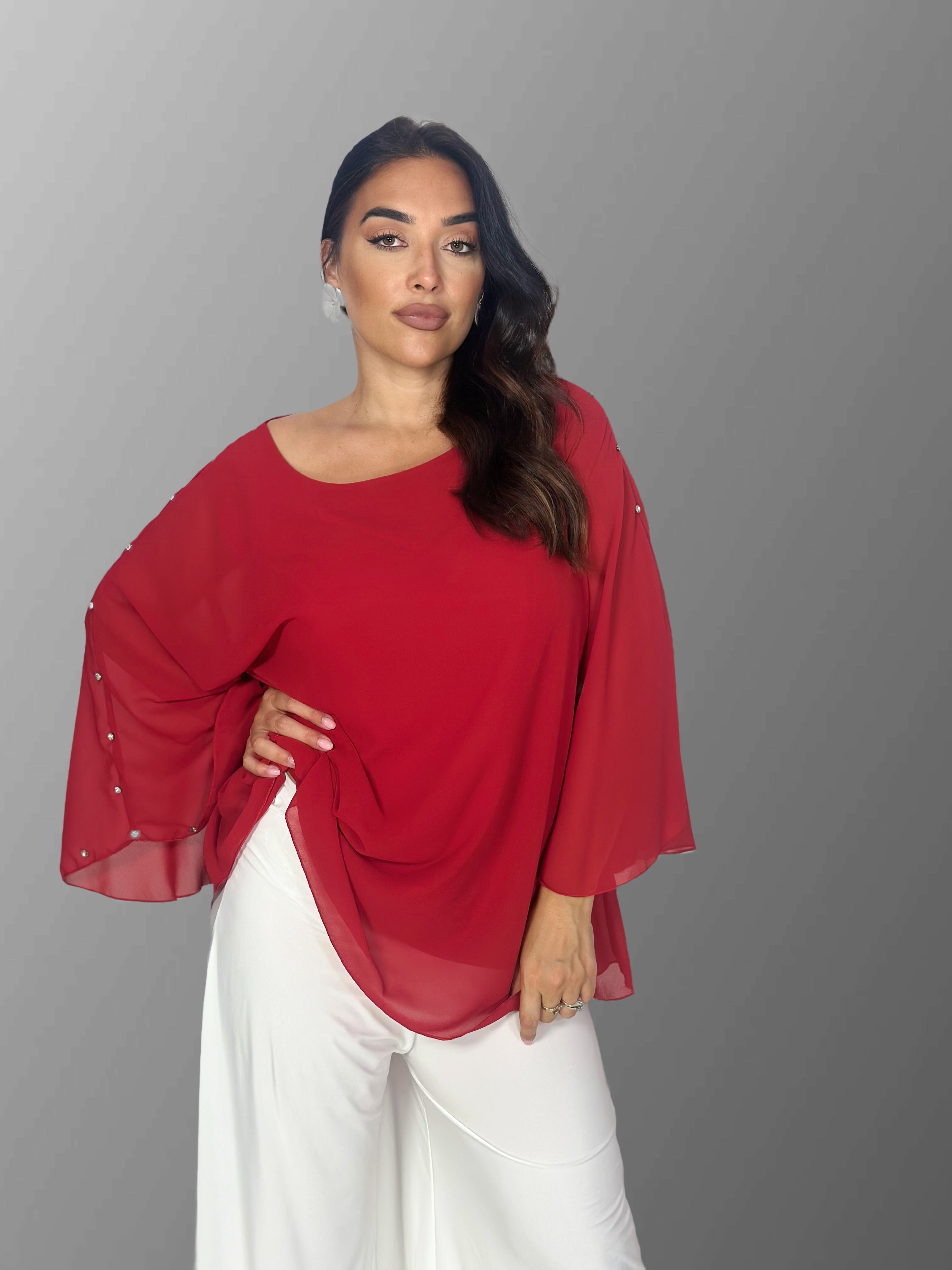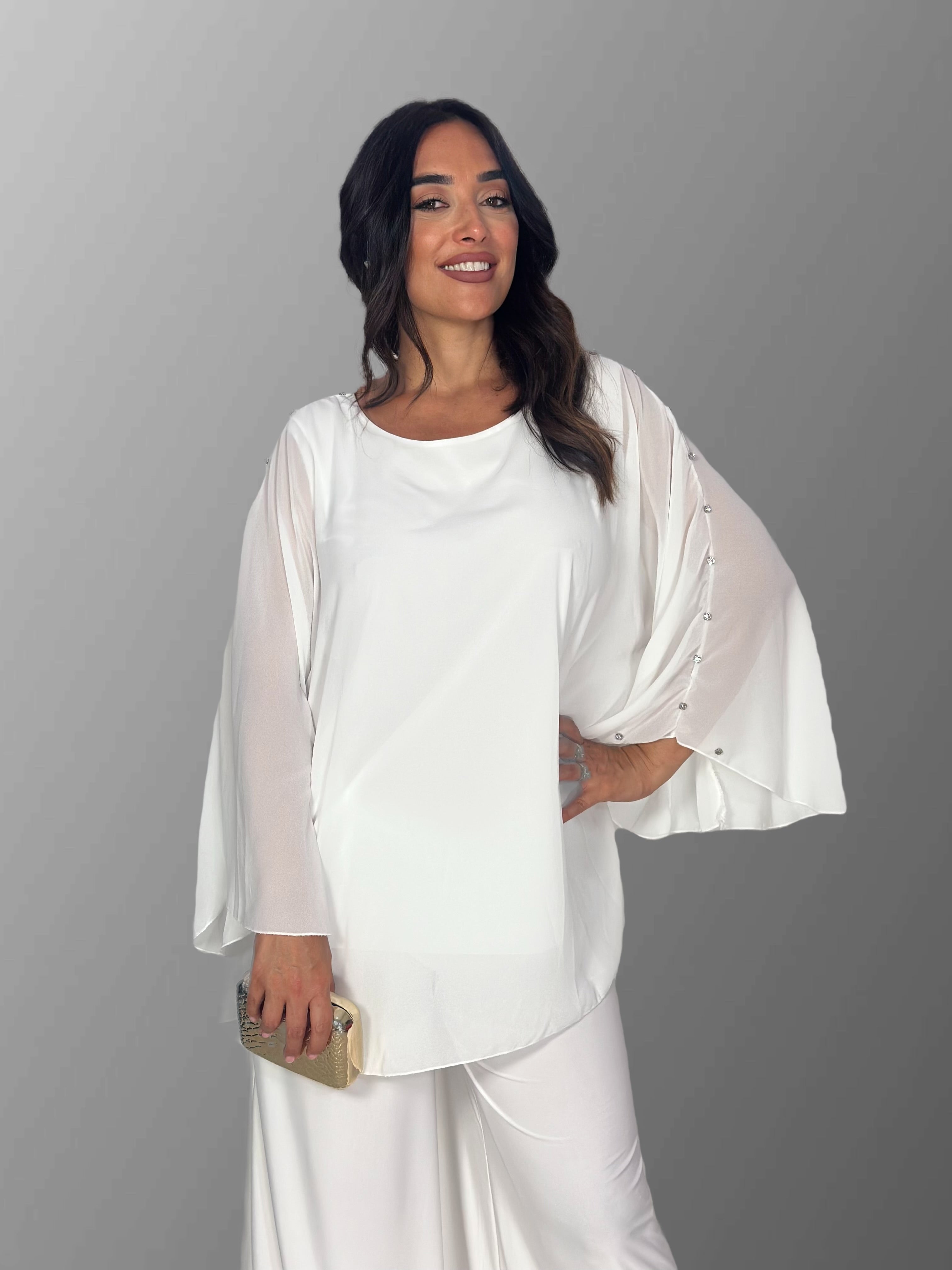 La maglia bottoni è un capo unico con pietre ricamate laterali. Questo dettaglio aggiunge un tocco di raffinatezza al design. Perfetta per chi ama abbinamenti distintivi. La maglia si distingue per il suo stile unico.